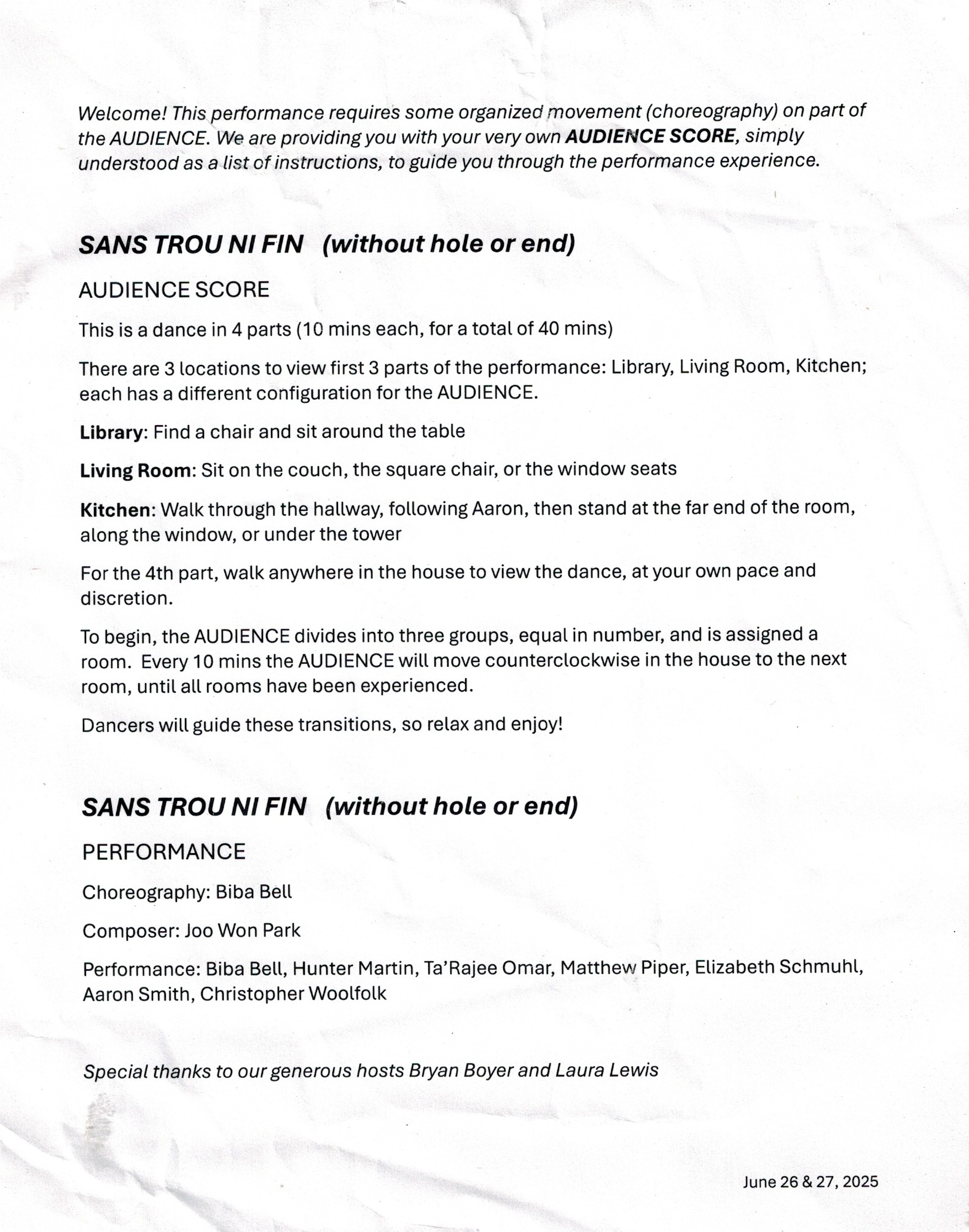 Seven Bird Watchers uses drum machines with customized sync tracks, and the sync track defines the form—the piece is simply seven sections with an increase in tempi and sonic range. While the composed sync track holds Korg Volca Beats’ tempo together, the human performers change the drum machine’s parameters according to the score. The score depicts the range of parameters performers can improvise.